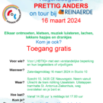 On tour bij Reinaerde16 maart 2024 Elkaar ontmoeten, kletsen, muziek luisteren, lachen, lekkere hapjes en drankjesKom je ook? Toegang gratis Hoe laat?Vanaf 14.00 uur ’s …